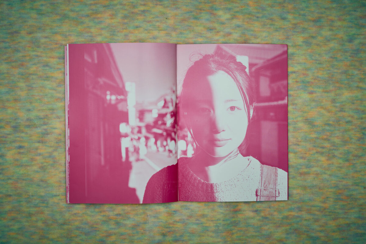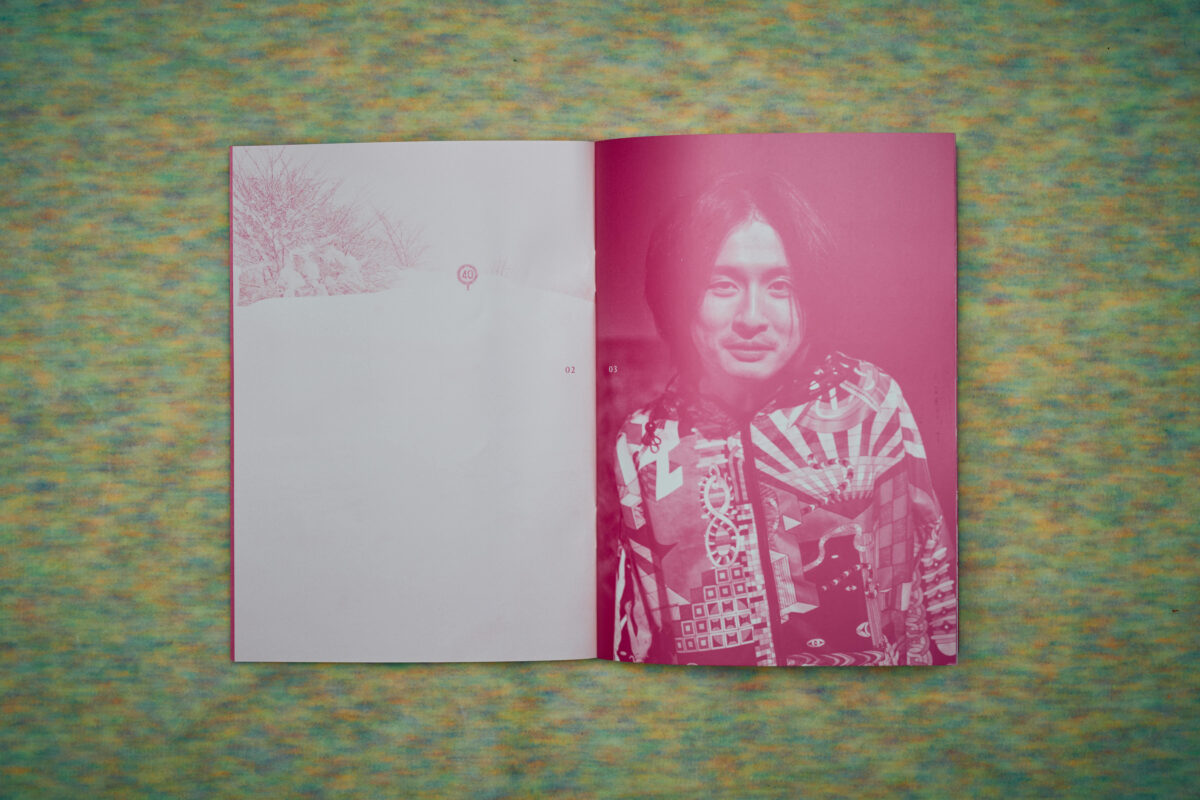 26人のポートレートとアザーショットで構成された、ピンクの単色刷りの小写真集。